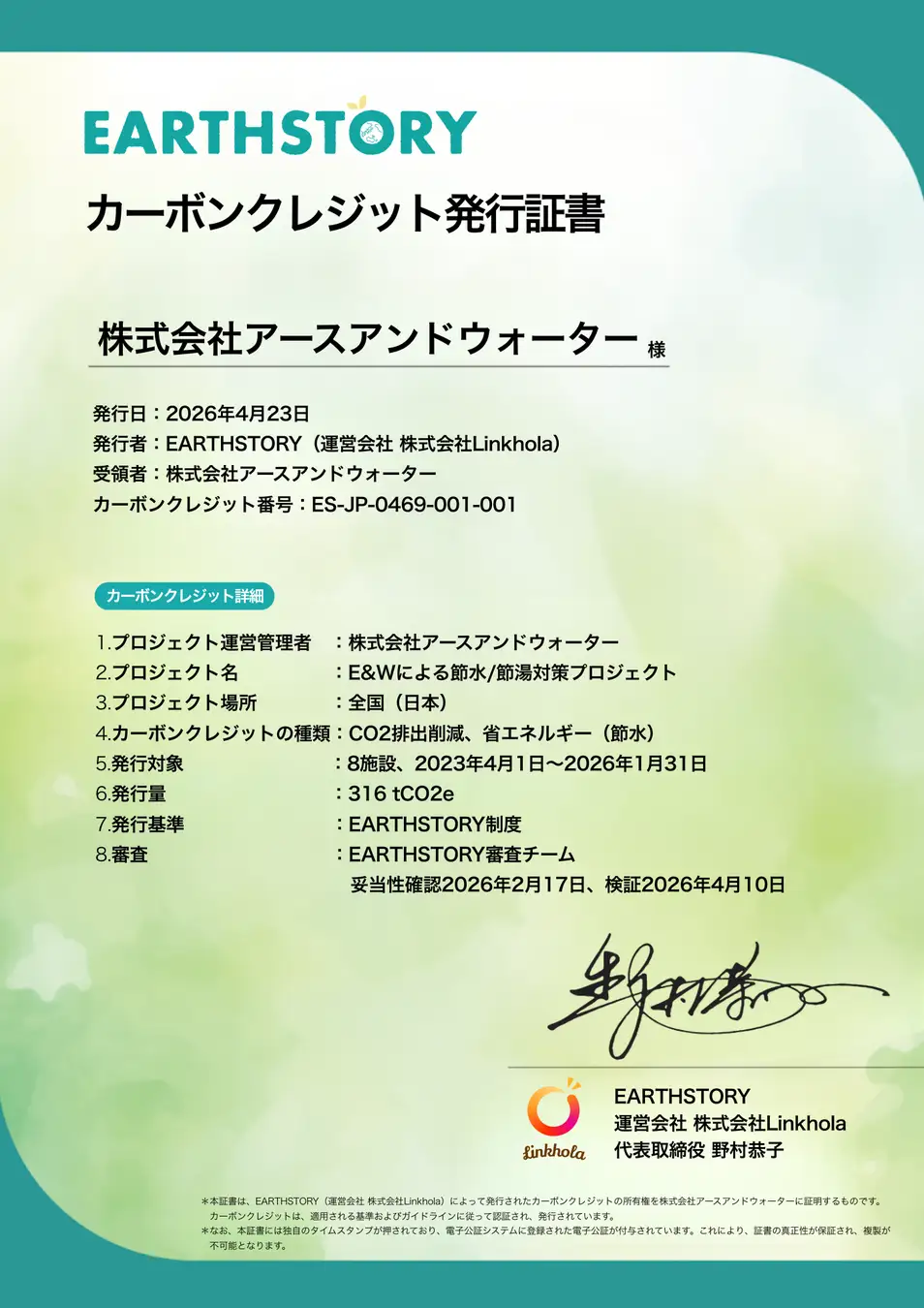 今後も、節水を通じた水道光熱費の削減による地域経済への貢献と、持続可能な社会の実現に向けた社会貢献活動に、引き続き努めてまいります。