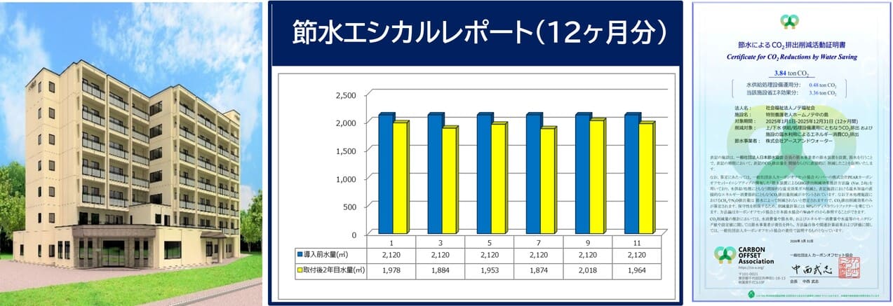 節水システム導入から1年が経過しましたが、現在も節水効果が継続しており、経費削減に非常に役立つ取り組みとなっております。さらに、今回CO₂排出削減活動証明書を発行していただいたことで、環境負荷低減という社会貢献にもつながっているので大変意義のある取り組みだと感じております。加えて、定期的に節水エシカルレポートを更新していただくことで、削減効果をタイムリーに確認できる点も助かっております。